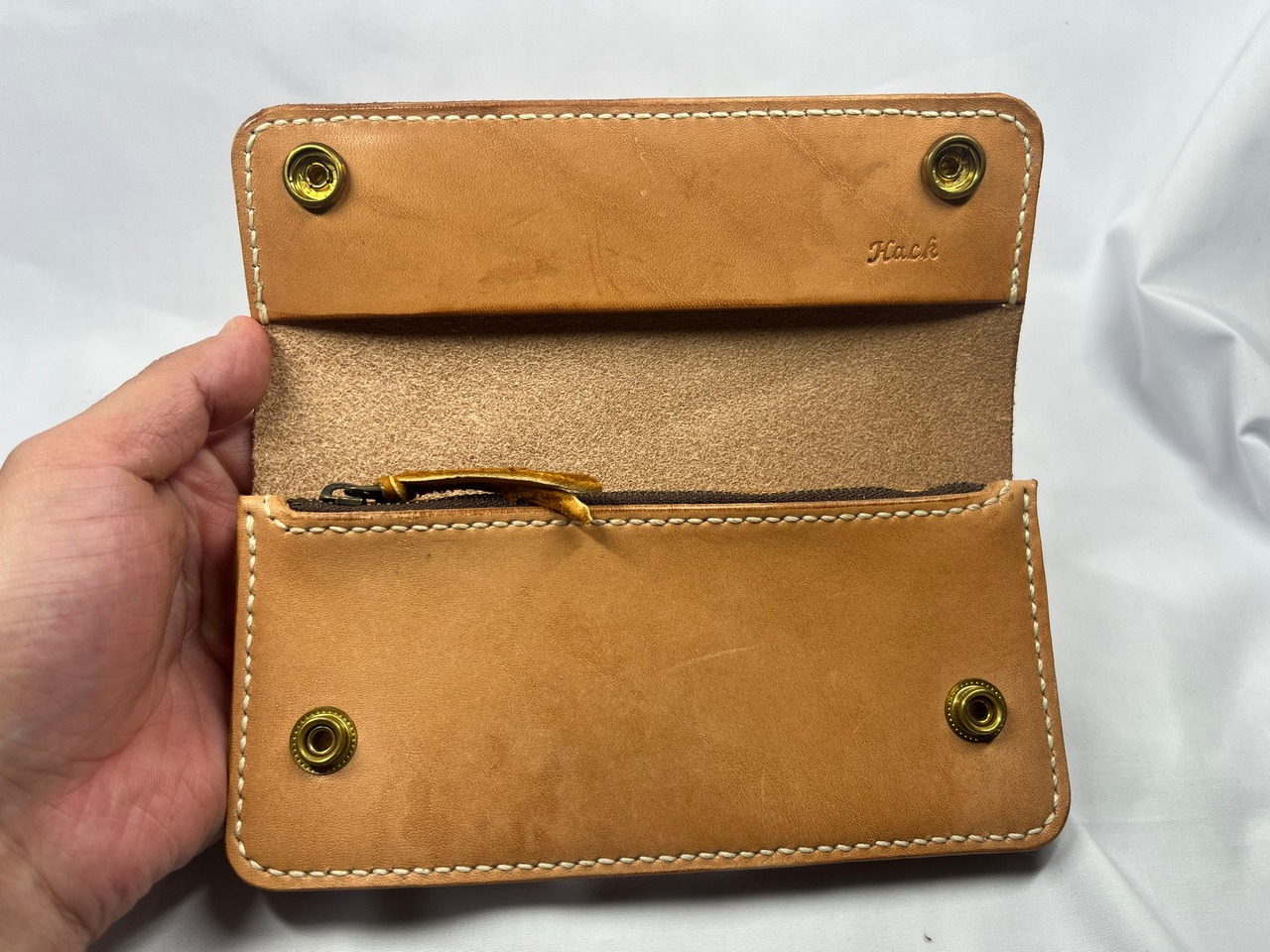 栃木レザーの多脂ヌメ革を使用したトラッカーウォレットです